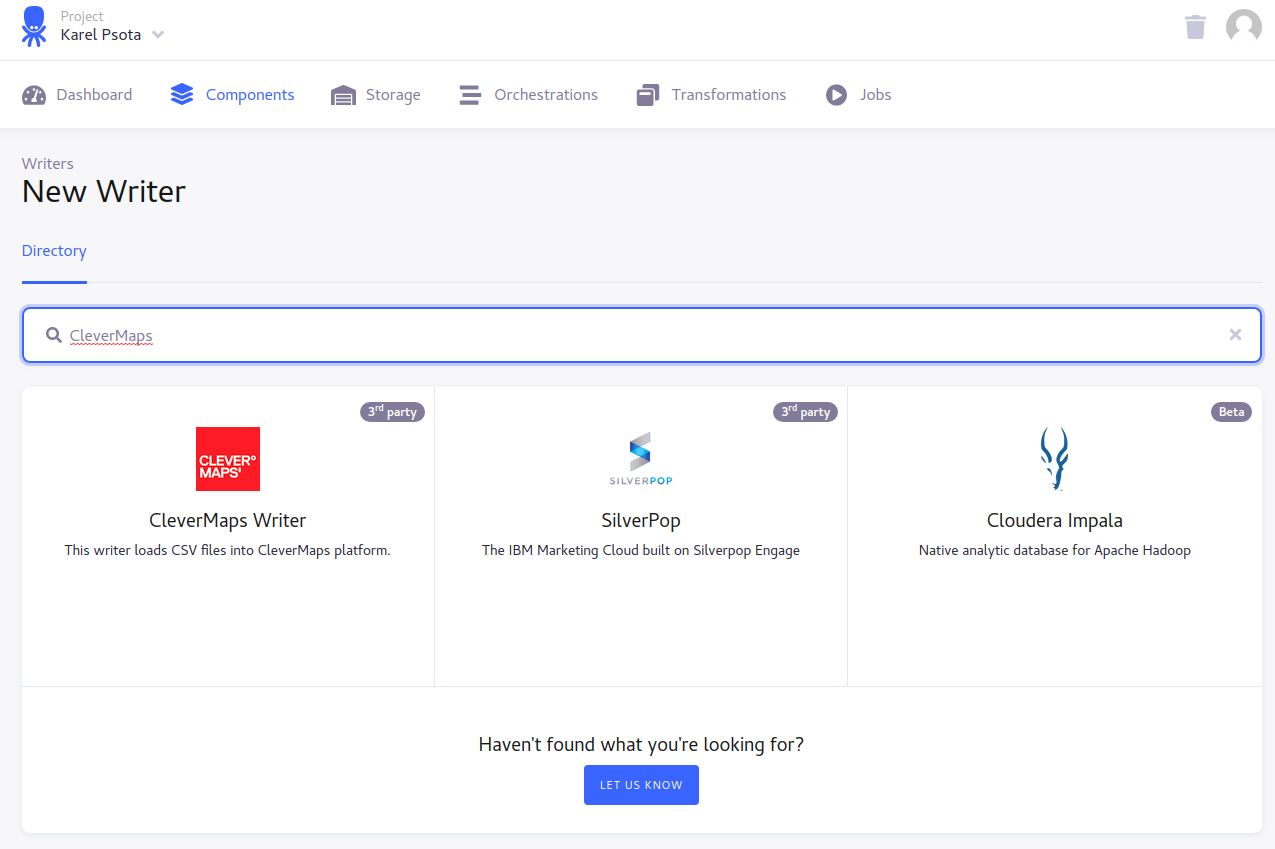 To setup the CleverMaps Writer, click on the “Components“ and then choose “Writers“.