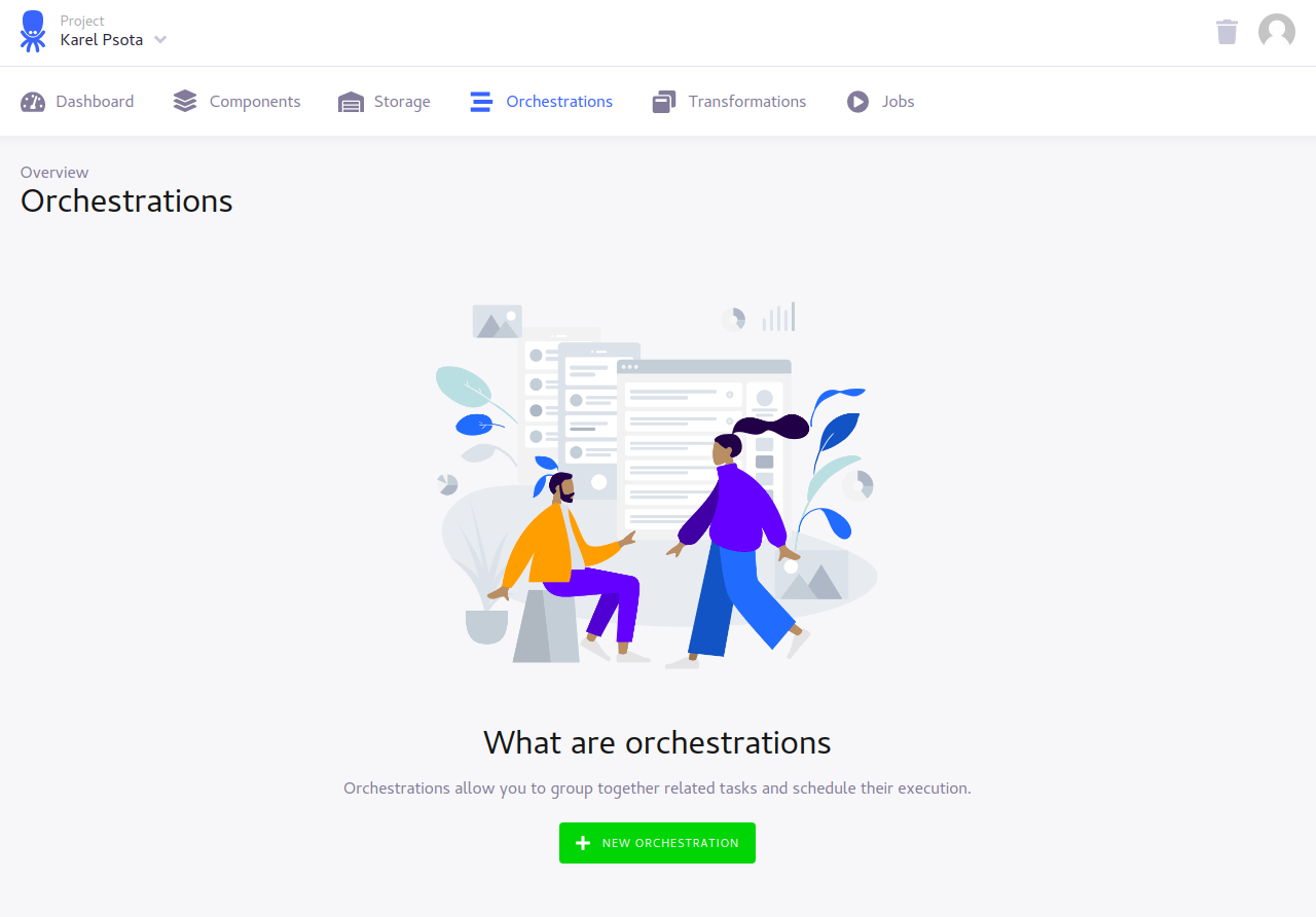 Now you should see the main Dashboard. Your free Keboola project was successfully created and now you can setup your data pipeline.