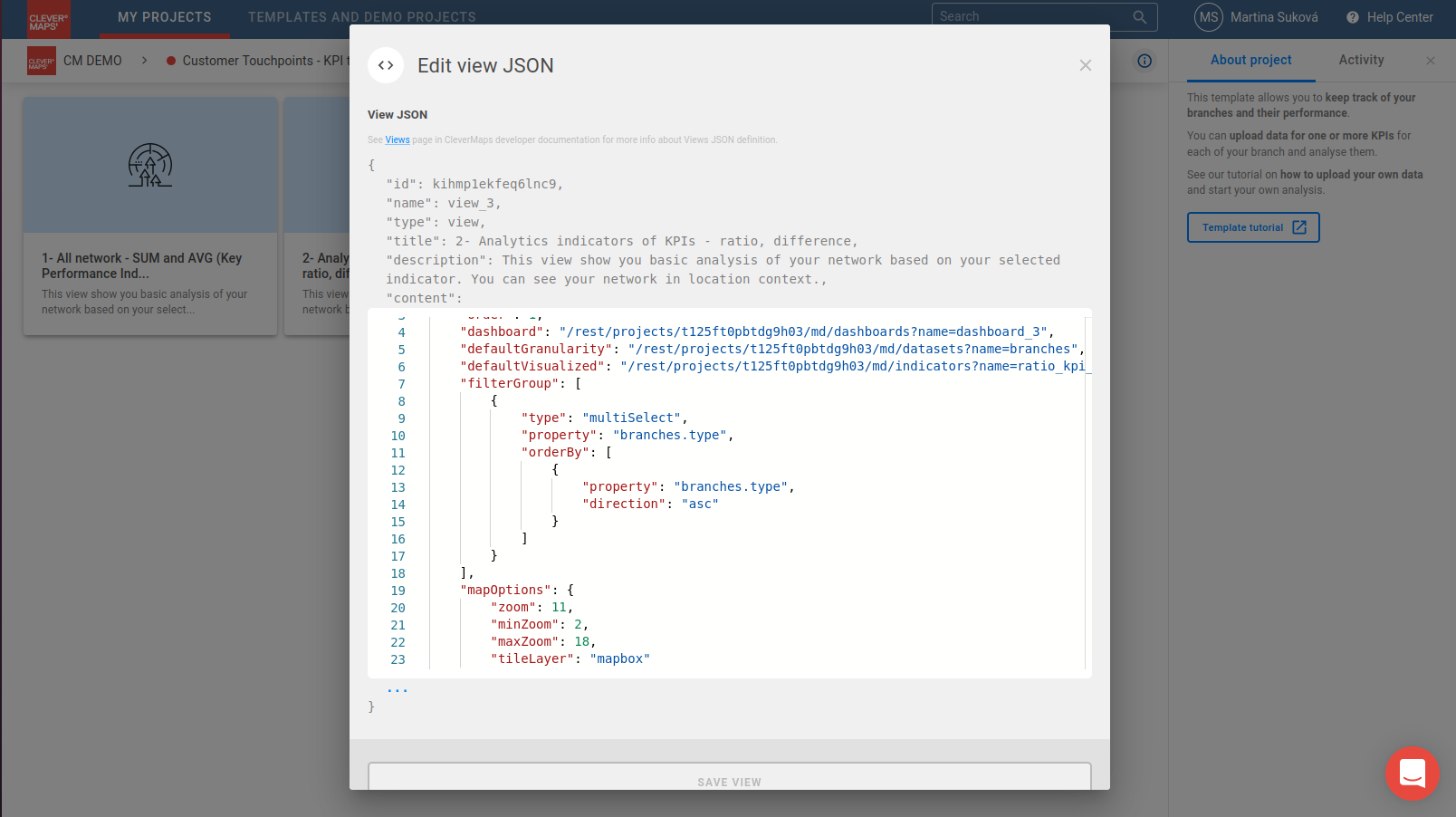 Go to https://secure.clevermaps.io/#/projectList/templates and select the Customer Touchpoints KPI tracking template. Click on Use with my data button. In the following dialogue fill up the new project name.