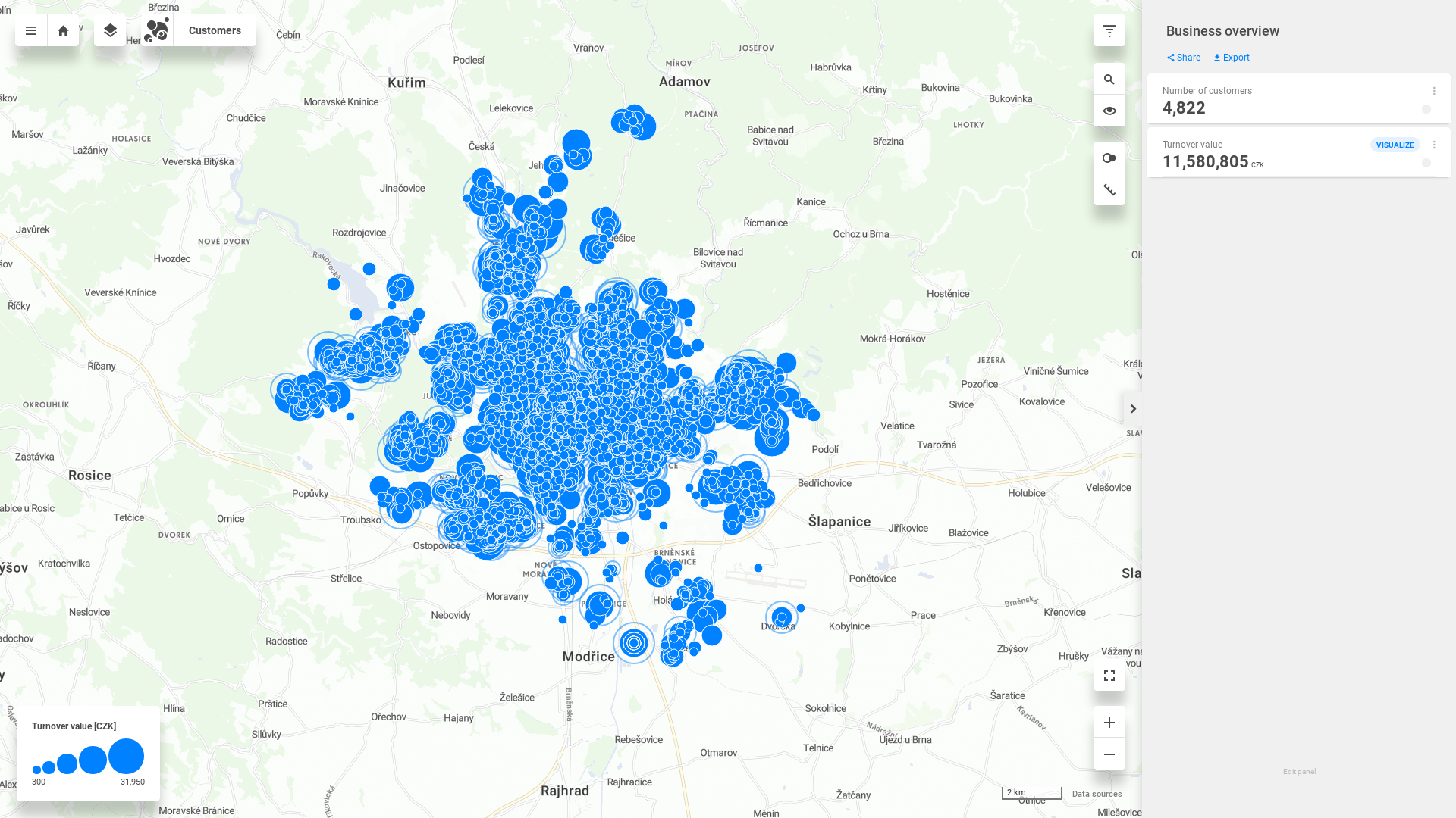 Now, there's a new indicator on the dashboard, and you are able to see the turnover values aggregated to the customer addresses.