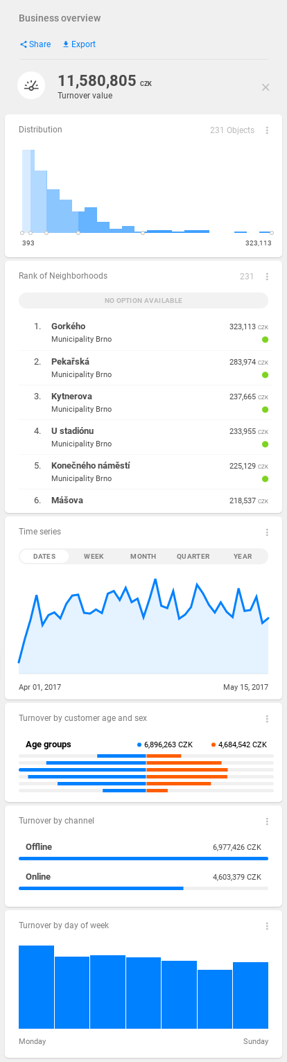 Business overview dashboard excerpt