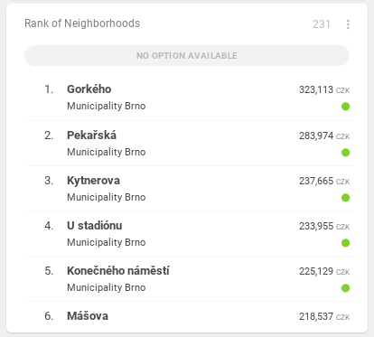 Add a ranking block and push the object. This block orders all objects in the map based on the value of selected indicator.